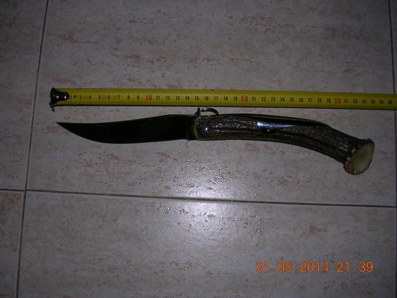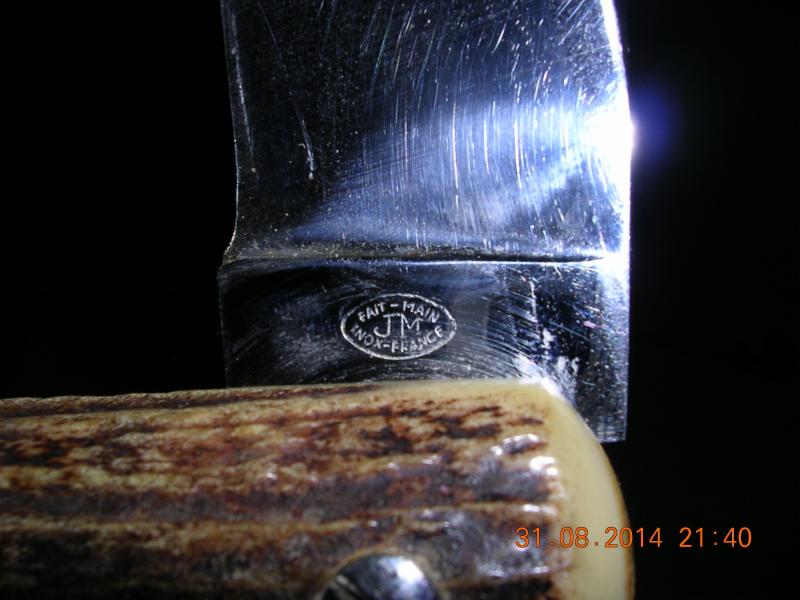 Navaja fabricada por el artesano Francés J.Mongin, completamente hecha a mano, sellada "FAIT-MAIN JM INOX-FRANCE", navaja mide abierta 34,5 cm., os pongo un enlace a la página de Mongin donde podéis ver que el mismo modelo pero en 26,5 cm, es decir 8 cm. meno que la mía, cuesta 308 euros, recuerdo que una vez vi la mía en una página de Internet y costaba sobre 500 euros.