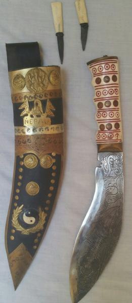 He conseguido este Kukri nepalí que me han dicho que es original de nepal. El mango es de hueso, mide 45 cm y el acero de la hoja es de 1cm de espesor. No encuentro nada parecido en venta y no se su precio estimado. Alguien me puede ayudar?