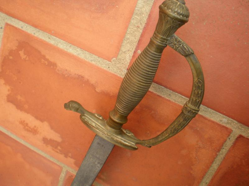 Pequeña corrección a lo dicho hasta ahora, es una espada de ceñir para oficial de infantería, pero el año del modelo es 1867. Aquí puedes ver el aspecto de una en mejor estado de conservación, incluyendo su vaina en cuero con juegos de latón: