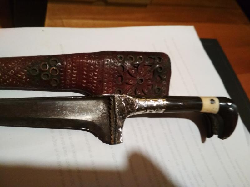 No soy un experto ni mucho menos, pero con mis 60 tacos me recuerda una daga del norte de África, pues recuerdo vagamente que me enseñó algo parecido un militar español que estuvo destinado allí.