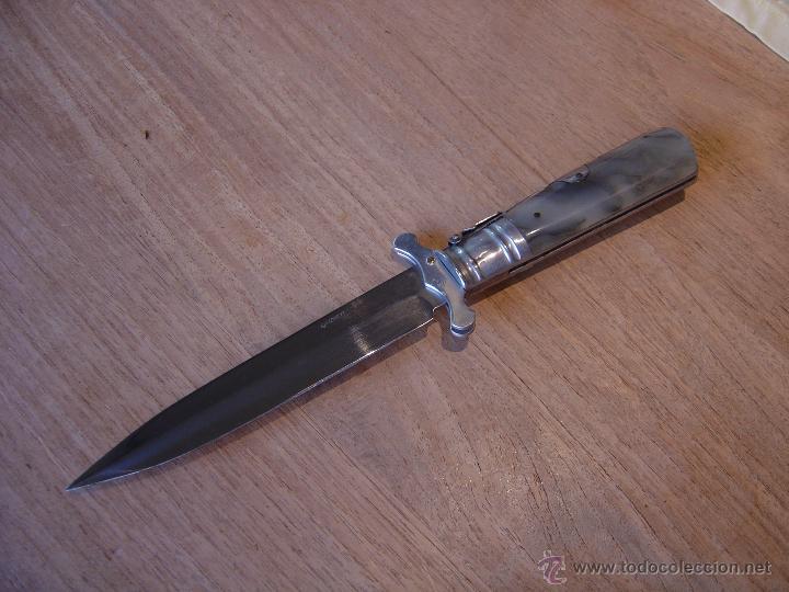 Este tuyo es Gómez como el mío de palanquilla. Las cachas son de imitación nácar, pero el cuchillo es el mismo (la vaina no es original, la hice yo para protegerlo y alguna vez portarlo, cosa que no he hecho, pues me da pena marcarlo):