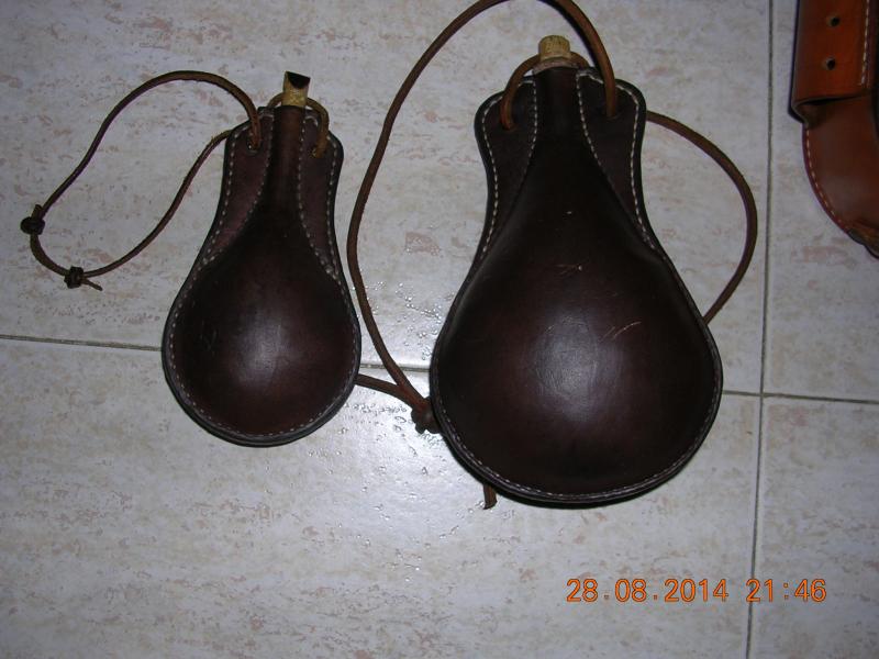 Las vasijas en forma de pera son válidas para llevar pólvora, perdigones o licor, están tratadas interiormente con cera virgen de abeja y son completamente estancas.