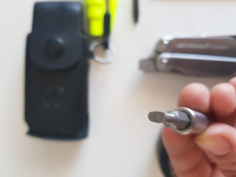 Yo la multi la tengo complementada con un extensor modificado y un estuche portapuntas, que quiero mirar de cambiar por un portapuntas más pequeño y llevarlo en el estuche de la navaja.