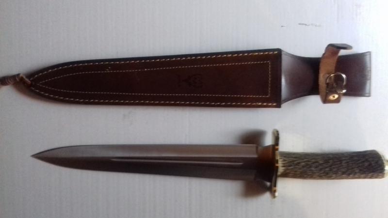 Le coloque una empuñadura de hasta de ciervo con pomo de latón a medida.