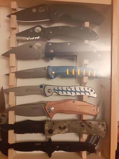 Si alguna está hecha en China, por Dios que está bien hecha. Todas estas están probadas y cortan como bisturis. Tengo otras pocas que ya no caben en el expositor. Y en el bolsillo,para trabajar una Spyderco Tenacius. La cosa es disfrutarlas vengan de donde vengan.