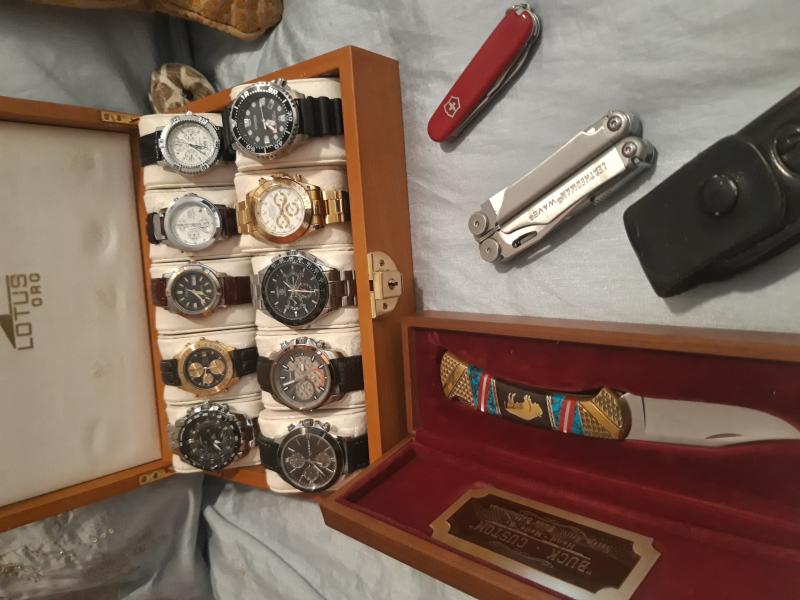 Buenas tardes compañeros,como los uso todos no sabia cual poner asi que me decidi y los puse todos jeje,,mis relojes,mi navaja de diario la de las salidas en moto y la guapa de la coleccion...saludos a todos..