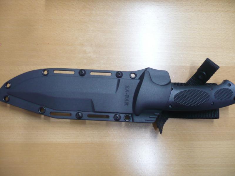 Se ve que es un cuchillo duro, pero ami los que mas me gustan son los ka-bar clasicos: rodelas de cuero... Lo que mas me gusta del tuyo es la morfologia de la hoja por lo demas lo veo demasiado "plasticoso" con todos mis respetos compañero.