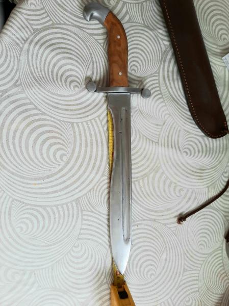 Estupenda herramienta. No sé que hace de longitud la hoja, pero robusto y con presencia. Por el encabado sencillo pero eficaz, y el tratamiento de la superficie de la hoja recuerda en parte a mi macho riojano de Azote, el que colgué al principio de la tira. Cuchillos al natural, sin concesiones de ningún tipo.