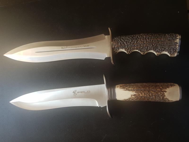 Preciosos vuestros " Fierros " compañeros. Yo tengo pequeñas colecciones de navajas y de espadas japonesas, pero no tenía ningún Bowie ya me estaban llamando la atención. Tras darle unas cuantas vueltas y considerar distintas opciones entre las que se contaban uno de Angel Corts que vendió en esta web un compañero, y al que llegué tarde para comprar, algún Cold Steel, algún CASE, etc, y teniendo en cuenta que va a ser mas para exposición que para uso en el campo, me he comprado este Muela Magnum 26 :