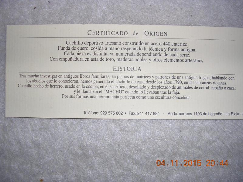 Yo estoy contento de tenerlo en mi colección por fin,ya que es el que mas me gusta de todos los que he visto de este modelo de. MACHO RIOJANO a, en asta de toro y certificados por su creador.