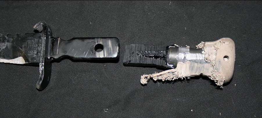 Pués eso. Compré hace un tiempo el cuchillo de combate Glock 78, que si no tengo mal entendido también es la bayoneta del fusil de asalto Steyr AUG77..........Por cierto un cuchillo muy recomendable.
