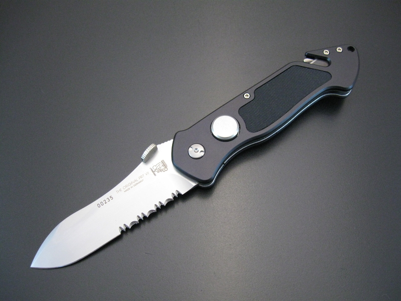 -La hoja tiene unos acabados superiores, corta que afeita, integra filo liso junto a perlado con el fin de abarcar el corte, y llegado el caso incluso el aserrado de plexiglas y/o aluminio de fuselaje. La punta de la hoja, en esta concreta configuración, está diseñada para optimizar y conseguir una gran penetración, manteniendo al mismo tiempo la robustez de la misma.
