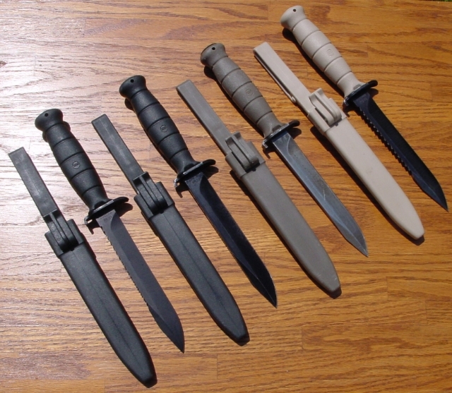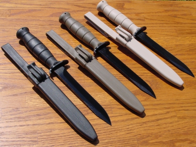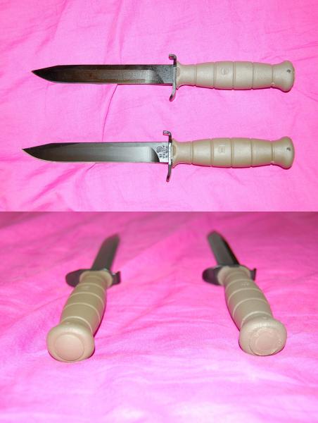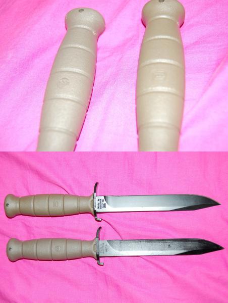Los cuchillos arena se introdujeron alrededor de 1990/1991 el nombre comercial para el color arena fue “Tormenta del desierto” y en ellos se utilizo el logo circular.