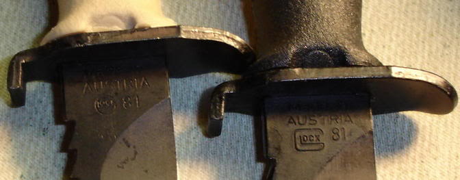Hola, buenas. He comprado un nuevo cuchillo Glock y veo que los marcajes con el logo de la marca son distintos 40