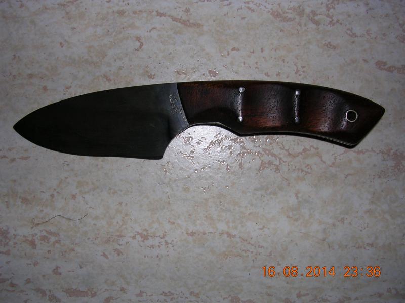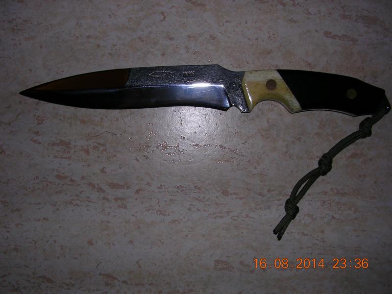 Son buenos cuchillos, los tres de arriba cuestan 650 euros cada uno, el tercero por arriba me lo regaló Angel en la feria del cazador de Tárrega, él lo bautizó como semidaga, la parte de arriba es brut de forge, la empuñadura ébano y hueso de camello, son piezas únicas, el pequeño lo bautizó como Dengue su precio, si mal no recuerdo estaba en torno a los 130 euros.