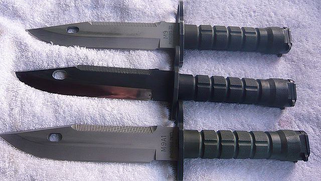 En comparacion con la bayoneta del AK 74, igual veo algo mas practica para el combate esta ultima, ligeramente mas pequeña, y de menos peso, que la de los yanquis, quizas la veo demasiado grande y pesada, aunque, caballo grande, ande o no ande.....