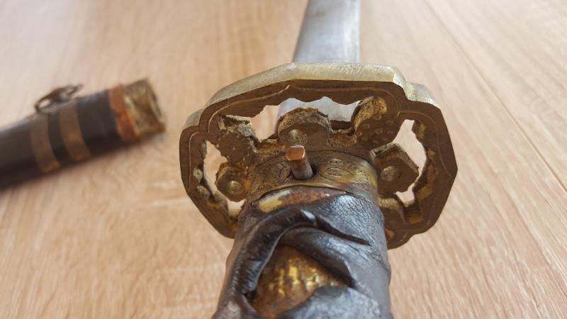 Tiene toda la pinta de ser un Kyuhachi-Shin Guntó , tipo 98 de oficial o un Kyugó-Shiki Guntó , tipo 95 para suboficial. La anilla en la saya y en la empuñadura son los típicos de esas armas y periodo.