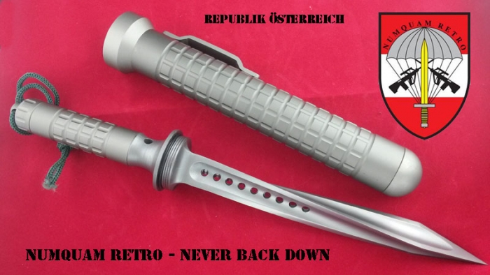 El Jagdkommando Tri-Dagger es una daga con un largo promedio de un 12-5 / 8″. La hoja es de 7″ de acero inoxidable 440A con un acabado rígido y la hoja de la daga torcida con un triple y agujeros en el fondo para el flujo de la sangre. Lleva el Jagkommando en honor a las fuerzas especiales austriacas y este cuchillo realmente hace honor a su homónimo de élite. La cuchilla tiene tres bordes afilados que se tuercen en un punto. Esta arma blanca es perfecta y funcional a la vez.