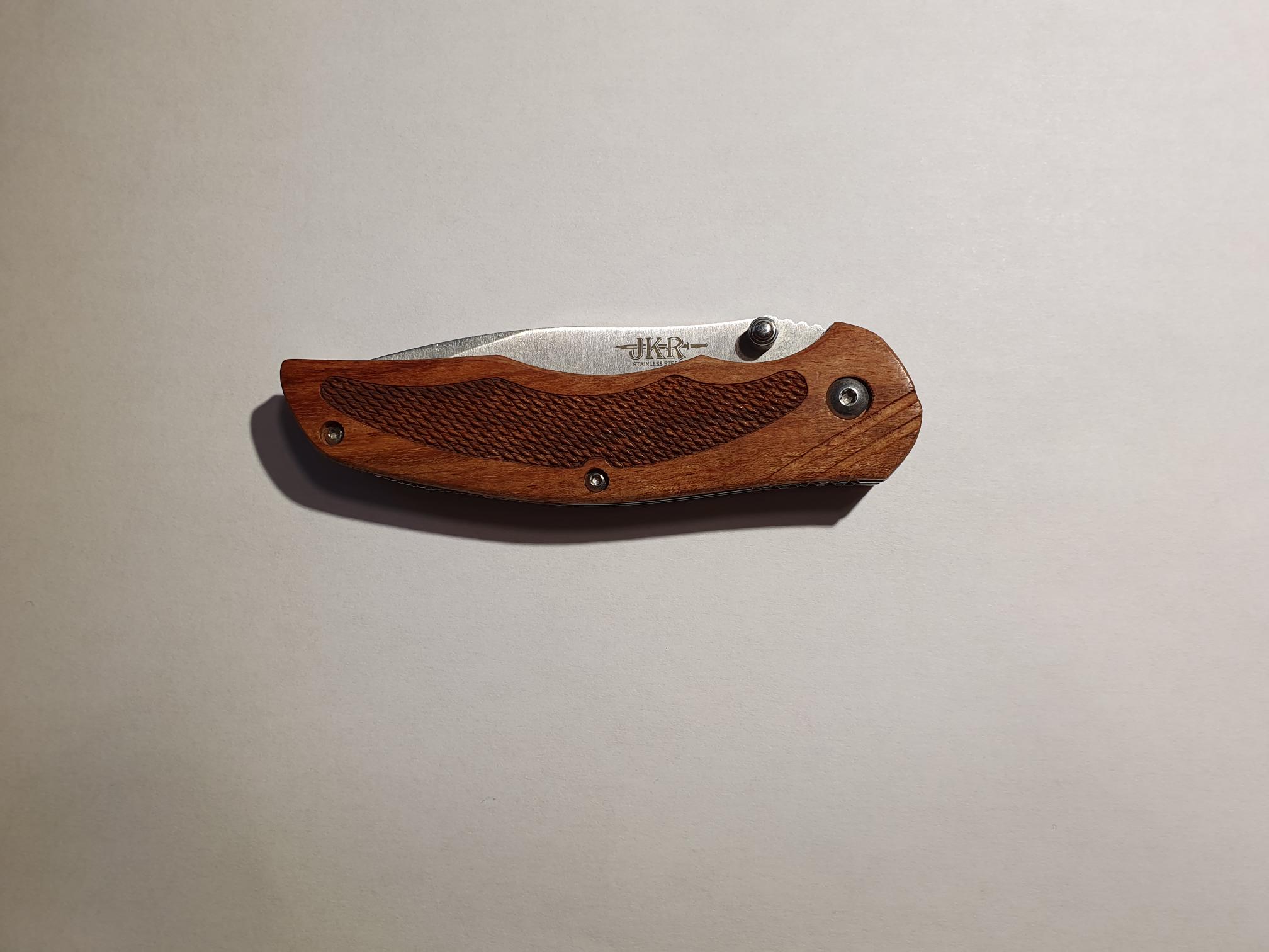 Pero me parece que esta vez, he acertado... se trata de una navaja JKR de Joker, la línea de básicos de esta marca. El modelo lo denominan "Navaja Deportiva JKR0648 Madera ", y la verdad, es lo que buscaba.