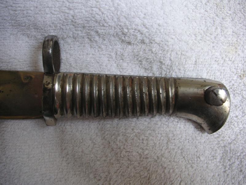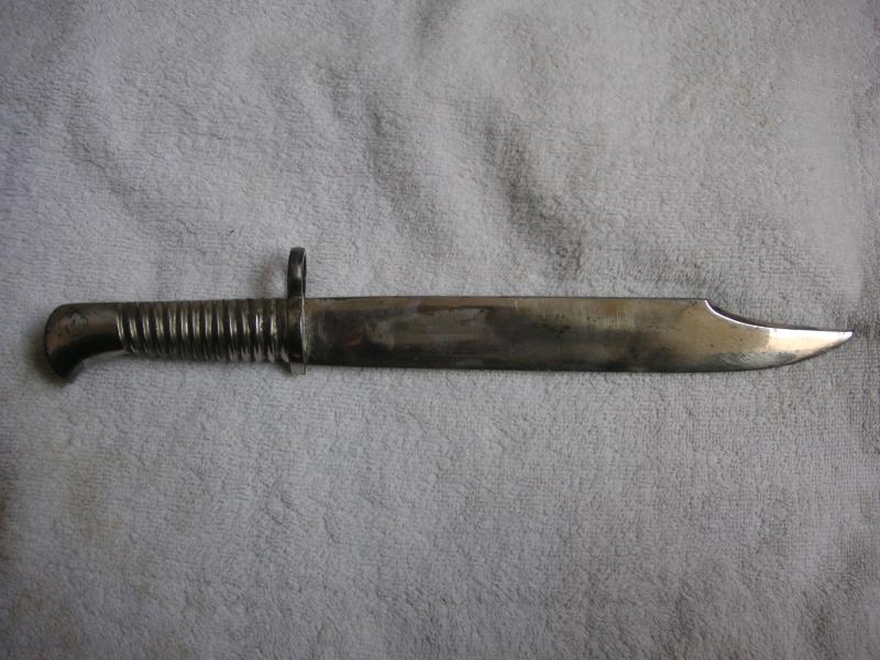 hola camarada , la empuñadura se parece a una chassepot,la hoja es bowie a si q originalmente no puede ser una bayoneta, pero estaira bien q te informaras mas,de quien era,en que epoca se dejo alli,pero es una rareza,pero lo que me extraña es una acanaladura para calarla en el fusil tan grande,a lo mejor se trata de una bayoneta asiatica, las de alli suelen ser bastante extrañas