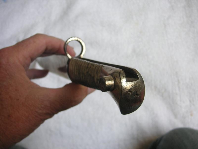 Tiene un acabado niquelado que ya empieza a deteriorarse y la punta un poco descarillada.
