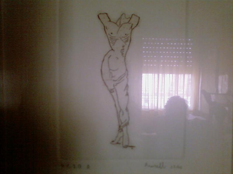 Uno de los dibujos es una silueta de hombre-afeminado y el otro no se si se vera bien, pero es una recreacion del quijote atravesa por una lanza y apoyado sobre su caballo.
