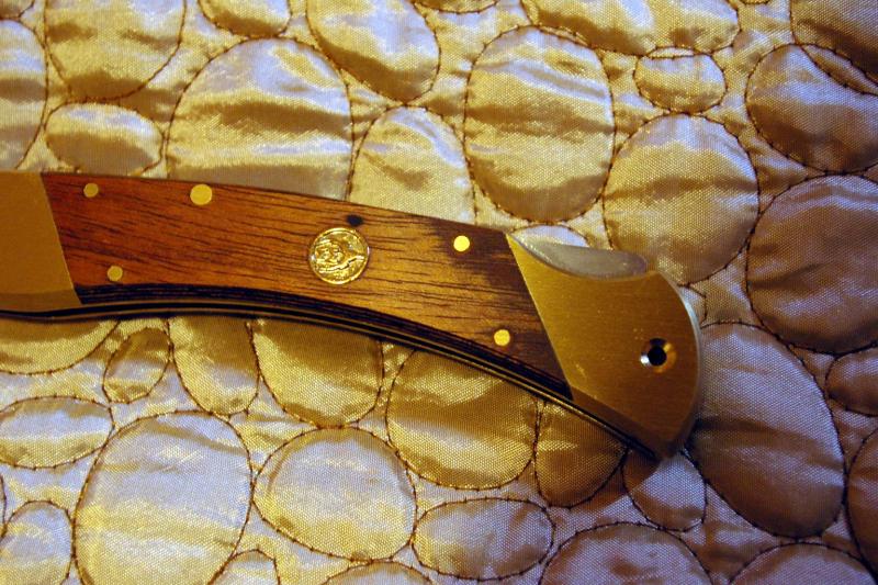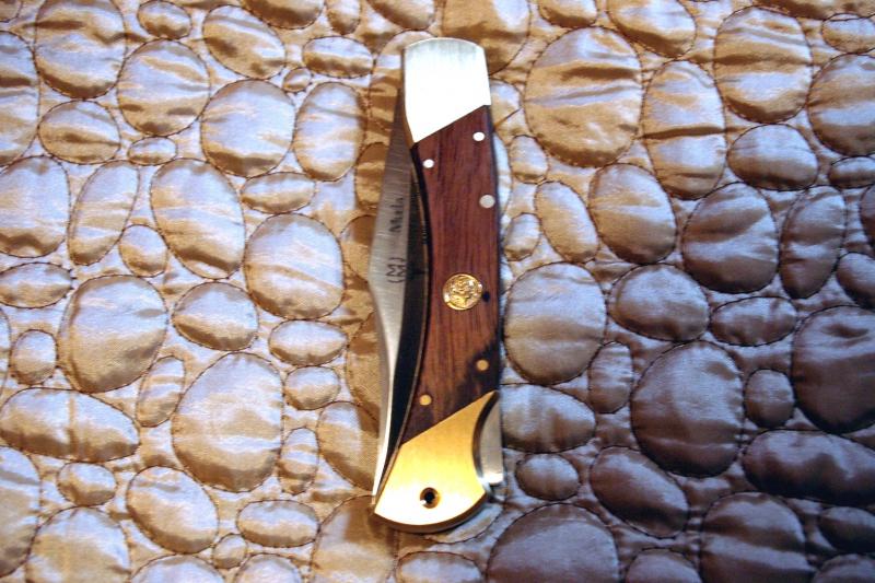 .... esta navaja Muela 10M que acabo de ganar en eBay (cuchilleria Silvestre en Ciudad Real)tiene algo más que una veta "diferente" como la define el vendedor (y no me refiero a la pequeñisima marca encima del escudo, si a la parte final de la cacha).