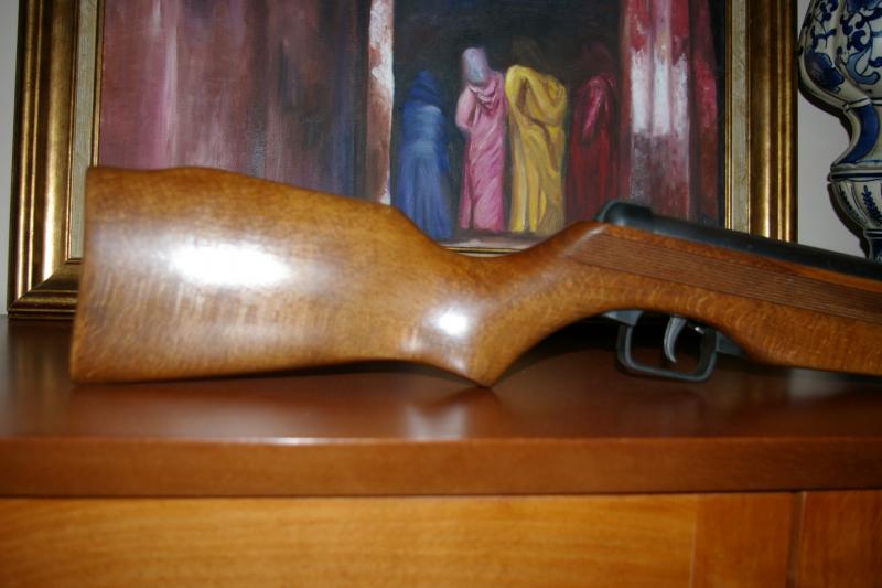 gaviota escribió:JAMAPO001 escribió:Abusando de tus conocimientos gaviota, habia pensado en pasarle una lija fina 000-0000 y despues darle un poco de tinte con nogalina diluida aproximadamente de la intesidad del color de la mancha; despues dejar secar y un poco de barniz que uso para carabina, TRU-OIL y un poco mas de lija.Creo que quedaria bien, pero si me equivoco la jodo.