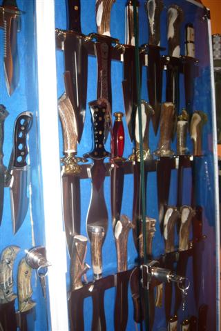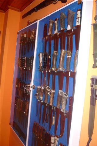 hola frankie50,te voy a comentar donde tengo expuestos mis cuchillos.tengo un par de expositores que hacen 1,50cmX0,56cmX10cm de profundidad.los encarge a medida.tienen dos puertas de cristal, con cerradura(por el niño).por fuera estan esmaltados en blanco,y por dentro forrados con fieltro azul.despues le he puesto unos imanes del ikea.(modelo gruntel).ese modelo de imanes ,te explico porque los he puesto.porque los imanes, tienen una tapa en acero inox,que se pone encima de la base que va atornillada al mueble,y queda muy bien.a ver si te pongo unas fotos.