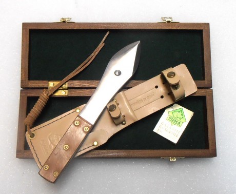 Hola compañero, ante todo felicitarte por tan magnífica pieza, solo decir Puma ya me atrae y si es de los de antes como les digo yo, pues ya ni te digo, la presentación de la pieza ya hace que te imagines la calidad de la misma, caja de madera forrada en terciopelo verde y un cuero que se le adivina de primera calidad, si a todo esto añadimos lo raro del cuchillo, y no digo raro por ser un chuchillo de lanzar si no por que no veo a Puma como fabricante de ese tipo de cuchillos.