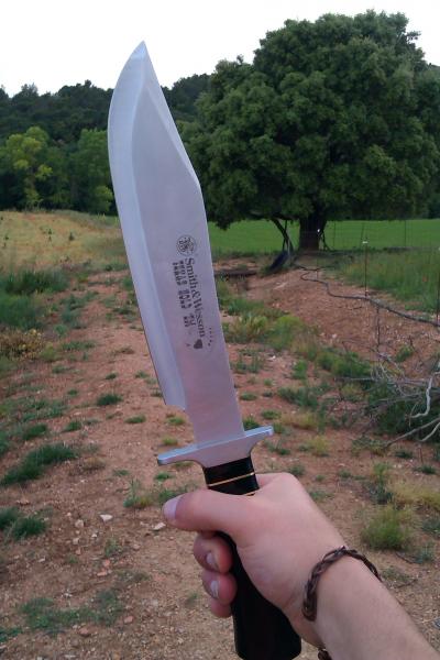 Me alegro de tu elección yo tengo el mismo cuchillo pero en la hoja solo pone S&W en grande y los relieves en la funda son distintos mas parecidos a los que llevan algunas cananas de la misma marca para arma corta, en particular me encanta este cuchillo si te fijas en la pelicula de Tarantino, de MALDITOS BASTARDOS, es el que lleva Bratt Pit pero con el mango en asta, respecto al video je,je menudo bicho se parece mucho al de Cocodrilo Dunde,por lo que veo te gustan los Bowie, mirate el Cudeman 106 de hoja enteriza, 25 cm de hoja, guarda de acero inox, es una pasada y baratito, un saludo y que disfrutes del cuchillo.