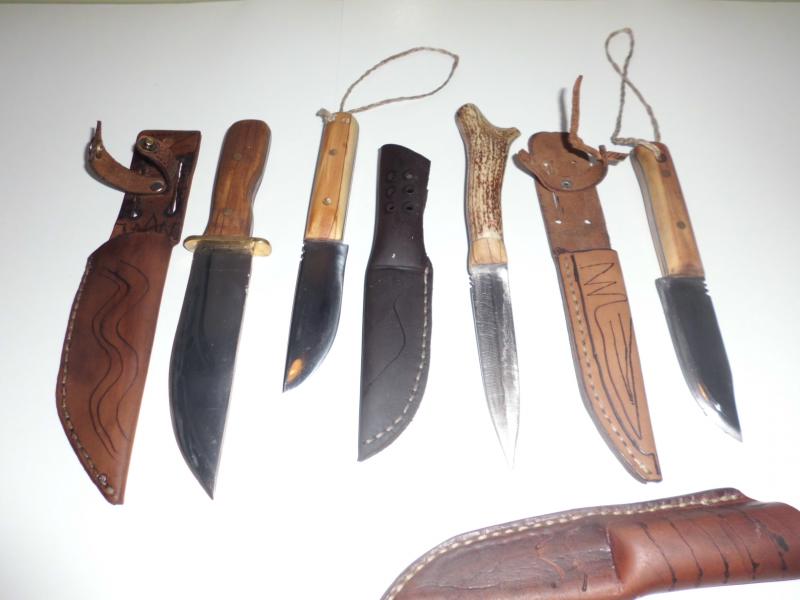 Hola compañeros aquí les pongo unas fotos de unos cuchillos fabricados por mi y mis humildes herramientas y cono cimientos en estos temas, están hechos de las cuchillas de un arado, madera de nogal ,algún trozo de cuerno y fundas en cuero, espero que os gusten un saludo