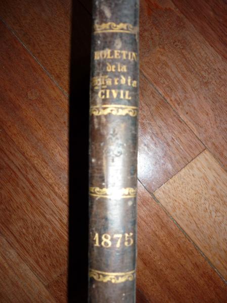 Antiguo boletin de la Guardia Civil, año 1875, con anotaciones manuscritas de la epoca, completo y en buen estado de conservacion, 664 paginas. 25 euros mas envio si fuera necesario.
