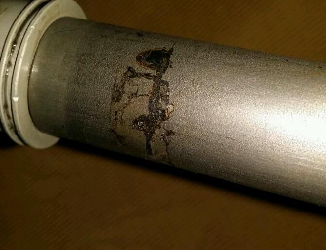 Lo extraño es que es solo en la parte baja, en el resto del tubo no tiene nada, supongo que abajo es donde sufre más.