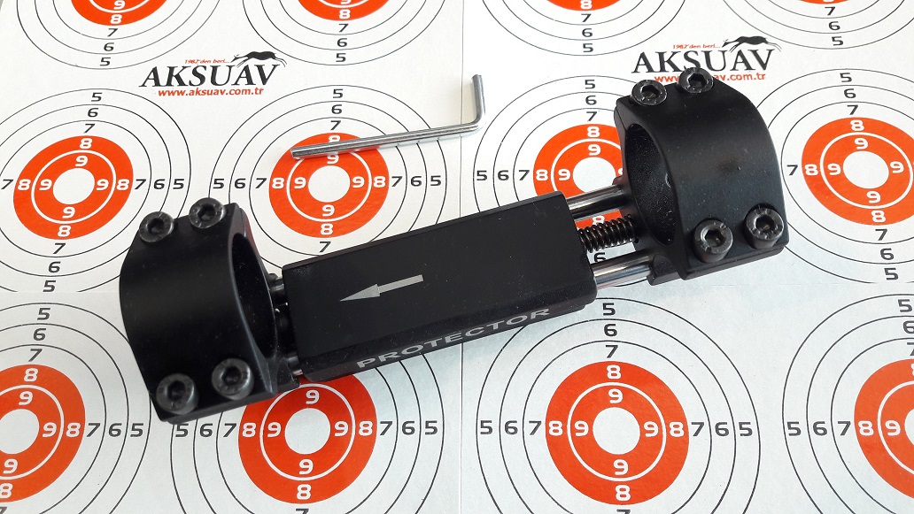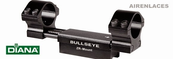 Yo tengo esa montura "bullseye" de Diana, en una resortera (pistón) Diana R8 Blaser, la he usado solo tres tardes pero la montura con su amortiguación consigue que el visor no se desplace y sea la amortiguación de la montura la que absorba el movimiento.