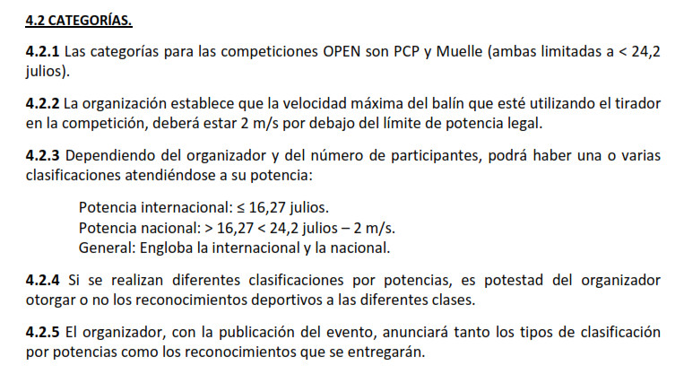 En España, que yo sepa, ningún reglamento de FT limita los Pistones a un máximo de 16J. Este es el extracto del Reglamento aprobado por la Real Federación Española de Caza.