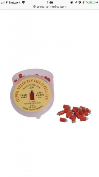 Balines, si quieres darle a lo que apuntas, pues JSB Exact, en todas sus variantes, o Cometa JSB, mas económicos, y H&N, los Baracuda Macht, o los Field Target Trophy, el resto, en fin, y sobre todo esos que pones, superligeros y con la punta de aluminio, demasiado exóticos, imprecisos, y al final, llenan de virutas de plástico las estrías del cañón, y precisión, cero patatero......es la clásica caja de balines exóticos raros que se compran, a ver que tal, y que acaba en un cajón medio llena, para la eternidad......debe hacer como 15 años que tengo algunas cajas de esas, y seguirán en el cajón, mientras que una de JSB, la fundo casi que en un día, si es del 5,5.......