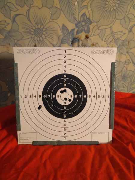 Os pongo una foto de mi arma de AC : Zasdar de cal 4,5 de CO2 monotiro con cargador multitiro de 9 disparos Me sorprendió , dentro de la sencillez, lo precisa que puede ser . Y una diana de 10 tiros a 10 m . Repito, soy novato pero me está sirviendo para corregir postura encare, gatillazos....Presenté la documentación en mi IA para la F el 24 de diciembre de 2019 . Desde entonces y para matar el " gusanillo " , adquirí un arma de AC para practicar en mi domicilio ( nada para competir , quería algo que se pudiese tirar a 10 M de CO2 y que al menos tuviera precisión y potencia sostenida y me permitiera entrenar , ya que según mi profesor , la técnica básica es la misma y sirve para coger rutinas ) Tengo la suerte de tener un garaje en el que puedo practicar,porque en mi club no tenemos campo de AC .También fui a mi club algunas veces y con arma prestada ( revolver cal 22 ), y pegar algunos tiros .Hace dos semanas ,me presenté en la IA para informarme y me dijeron que "estaba pendiente de la firma ". Después pasó todo lo que ya sabemos , así que no queda más remedio que esperar y cumplir estando en casa . Estoy aprovechando la situación y además aprovecho para poder practicar