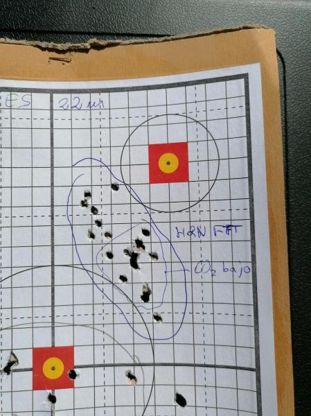Los mismo balines y otros H&N FTT a 22m con un cierzo racheado del carajo y un visor distinto