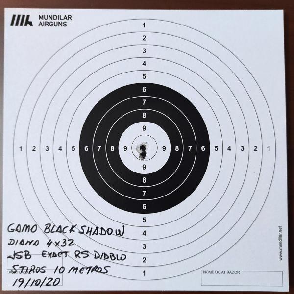 Y al final JSB, el exact RS, solo es a 10 metros de momento no dispongo de más, puede que a más metros la cosa cambie, pero de momento muy contento con ese trozo de "plástico".