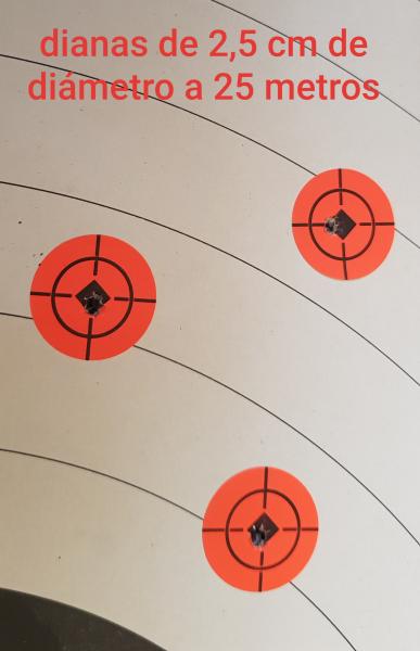 la 1ª es a 25m sobre dianas de 2,5cm de diámetro