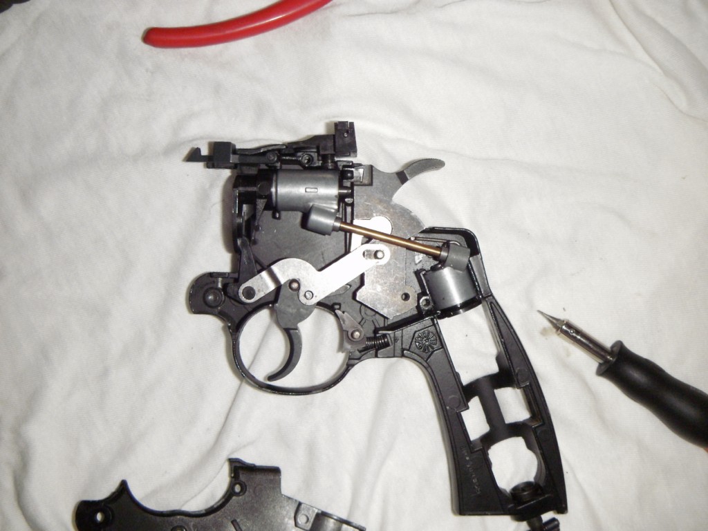 Ayer se me ocurrio mirar que le pasaba ( desmonté el arma) y encontre el problema, pero en el transcurso de "el arreglo" al final me encontre con todos los mecanismos del revolver encima de la mesa y bueno la monte y desmonte varias veces hasta que la volví a su estado, pero en estas que me cargue una picecita de plástico y la uña que mueve el tambor ahora no acciona pues esta pieza lo que hace es fijar esta uña en su sitio.