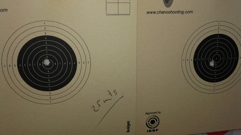 Bueno pues yo os enseño una pequeña muestra de lo que puede hacer una de mis carabinas en torno a 9/10 j a 25 mtrs, concretamente FWB300s, osea una buena veterana en estas distancias e incluso menos potencia como podría ser a 6/7J, ya que disparar aves, roedores, conejos etc etc nunca me ha gustado.