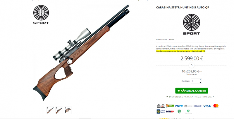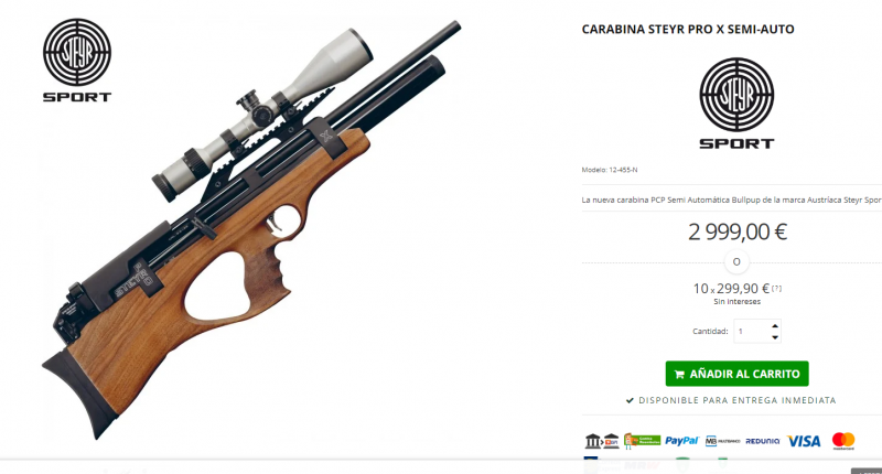 manolosolo escribió:Hace mas de una década que existe la HUBEN K1, arme semiautomática pcp, y STEYR tambien tiene armas semiautomáticas, es decir, disparan hasta vaciar el cargador, y solo apretando el disparador hace tambien años, como el Garand, y no son las típicas todas sofisticadas de alta competición, solo tienen una gran pega, son los 3.000 euros que cuestan.............. :roll: