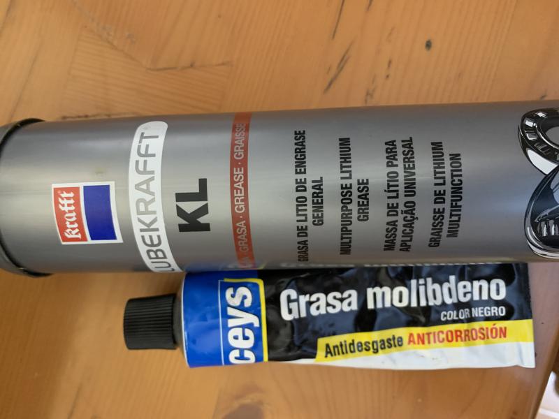 Normalmente siempre tengo en casa grasa de molibdeno que, es la que empleo siempre para los tetones de los cerrojos (armas de fuego ). Al segundo o tercer cambio del deposito, no tenía suficiente fuerza para poder roscarlo correctamente, preocupado, llamo al Sr. Pablo de Ibergrips y como si fuese lo mas natural del mundo me pregunta : Le has puesto grasa? al contestarle afirmativamente, me dice : Pues tienes que emplear grasa de Litio.
