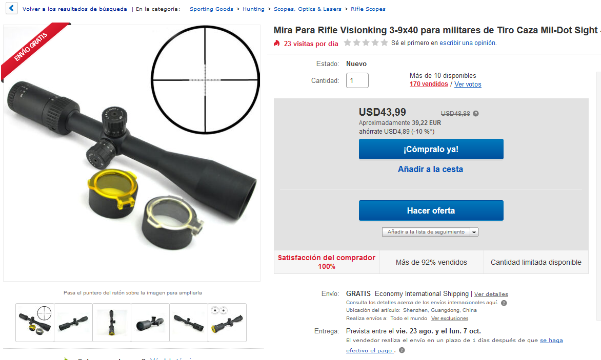 En visores o bien los pides por Aliexpress y tarda un mes, en Amazon y Ebay unos +-15 días o a armería física 24-48h, un chino remarcado de marca por 4 o cinco veces el precio de los chinos de aliexpress