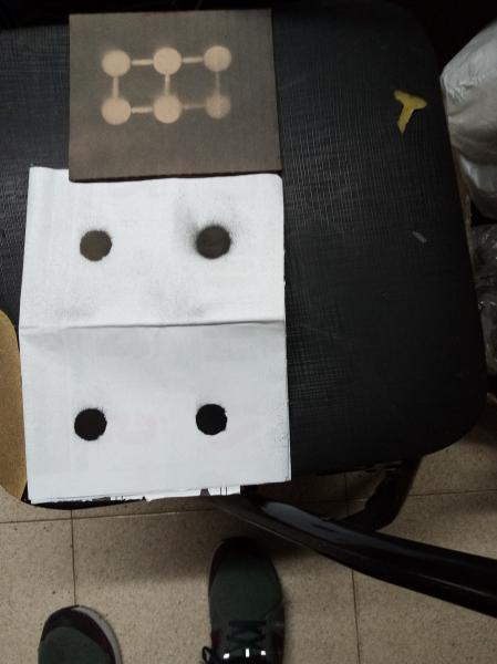 Tenía más de dibujos asi, y otros mas pequeños con formas de bichos, pero se gastaron, a los críos le hacían más gracia que los círculos. Y con una gota de la pistola termofundible, pego chapas de cervezas, mecheros vacios, botones , etc, sobre un carton, que en caso de impacto saltan volando y haciéndose añicos . Más vistoso y entretenido