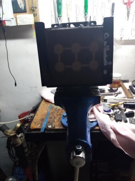 Ahí está el mío. Con chapa de 4mm detrás de las dianas para asegurar que no se rompe. Y los péndulos