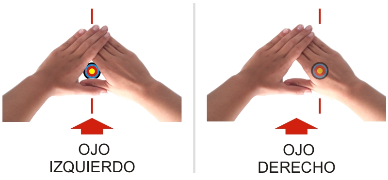 Ahora cierra un ojo y luego el otro. Cuando cierres por ejemplo izdo y sigas viendo el dedo misma posición respecto fondo, tu ojo dominante es dcho, si se mueve al cerrar izdo y fijo con dcho el dominante es el Izdo
