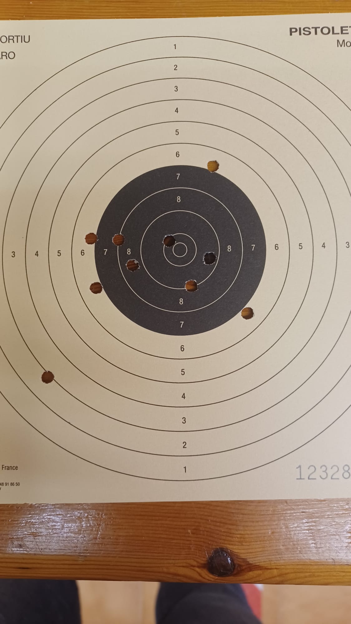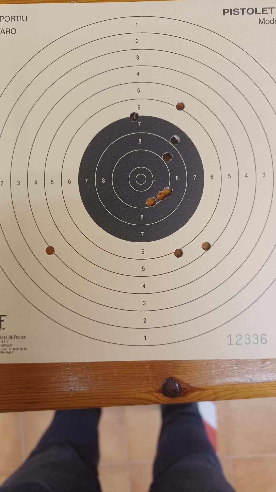 Cierto, lo intentaré pero no soy profesor, suficiente tengo con aclarme yo jaja. Hoy la primera parte se ha centrado la clase un poco en la posición a la hora de disparar, en coger aire y soltarlo hasta el 40% antes de disparar y en digamos cómo apretar el gatillo. Luego ya más con la diana, en mi caso decirme un poco qué tenía que rectificar, parece que tengo tendencia a apuntar demasiado alto (veo poca parte de lo "blanco" a la hora de disparar), que tengo que dejar un poco más de margen, apuntar en la linea del 5. Yo desde 10 metros no veo si apunto al 5 , al 4, al 6 o dónde apunto la verdad.